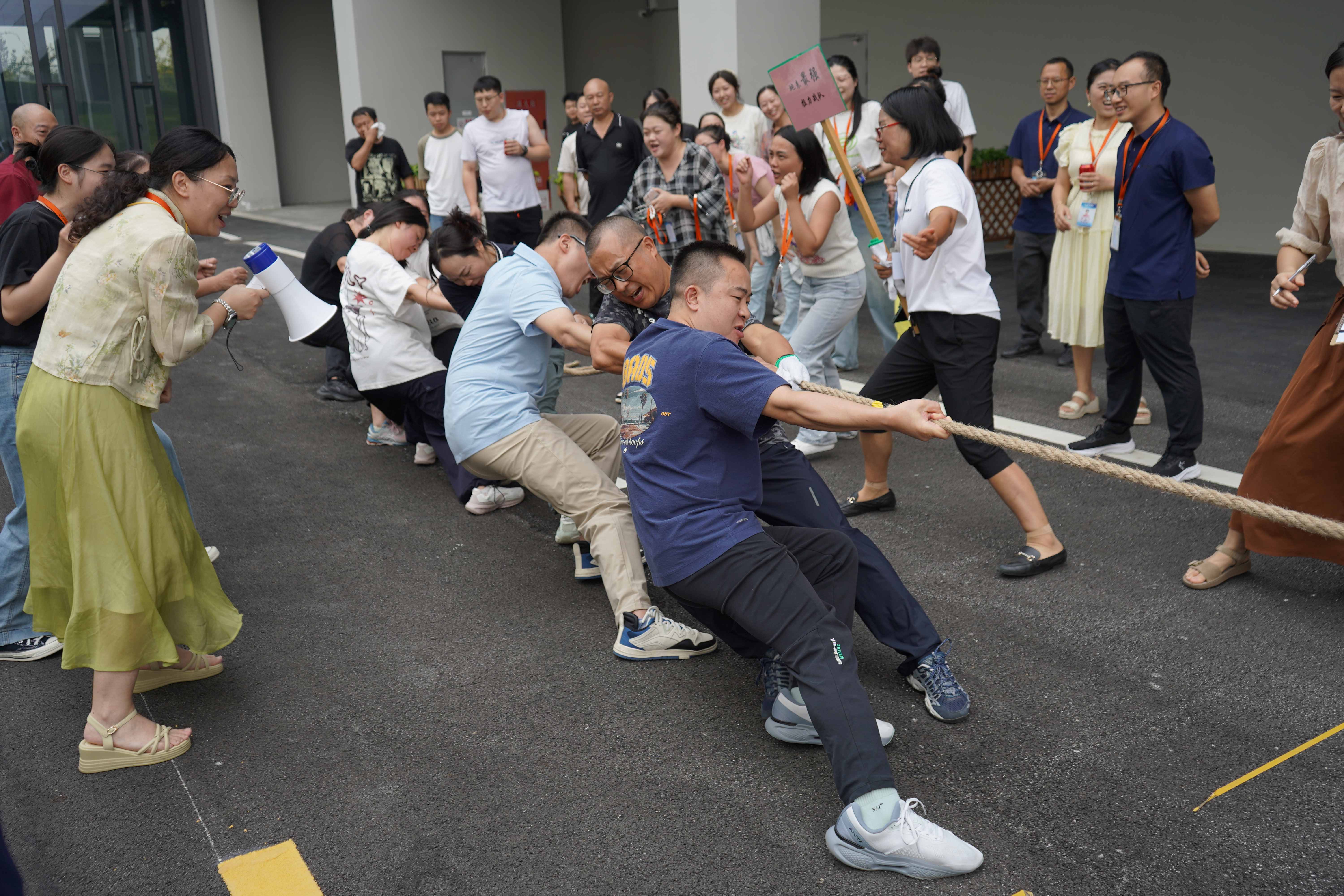 本次拔河角逐不但是实力的角逐,,,,,,,,更是团队精神的生动体现。。。。。。。每一位队员都拼尽全力,,,,,,,,每一声助威都点燃赛场。。。。。。。