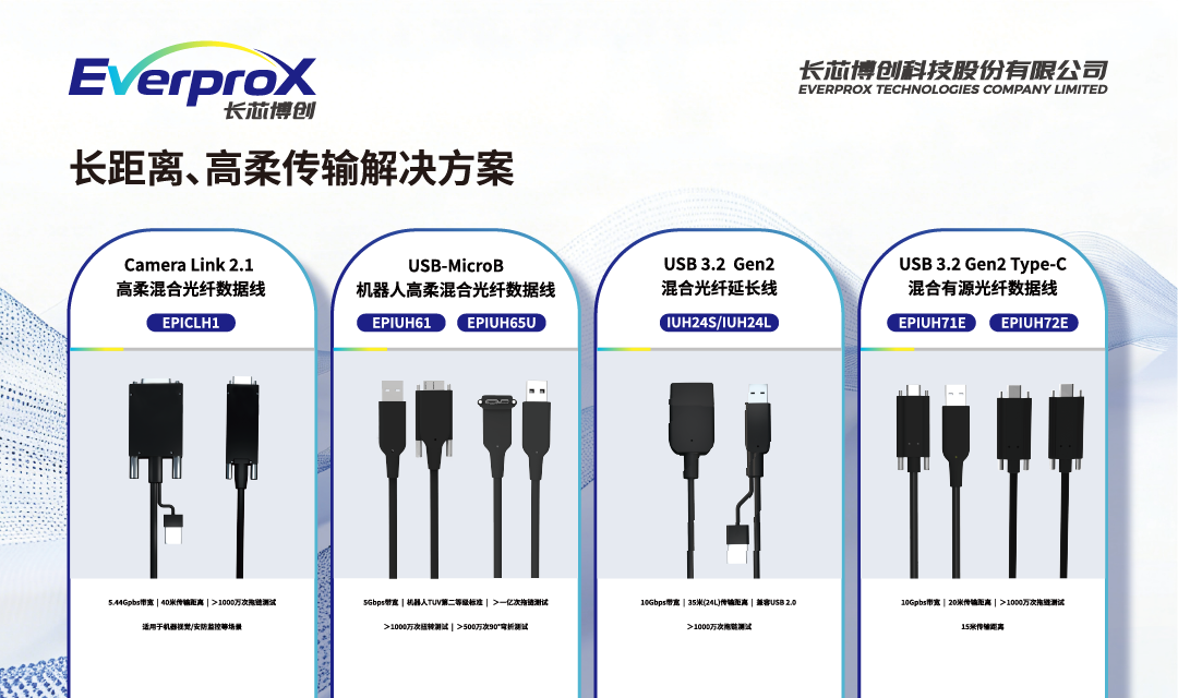 z6com官网登录入口展出的多款全球首发及定制化产品,,,,,,,专为机械视觉领域量身打造,,,,,,,用光纤替换古板铜芯,,,,,,,支持更长传输距离、线身更轻细柔软、无辐射抗电磁滋扰、通过种种严苛的可靠性测试,,,,,,,彻底突破了古板铜线在距离、性能、寿命上的多重限制,,,,,,,完善适配种种工业级应用情形。。。。。。。